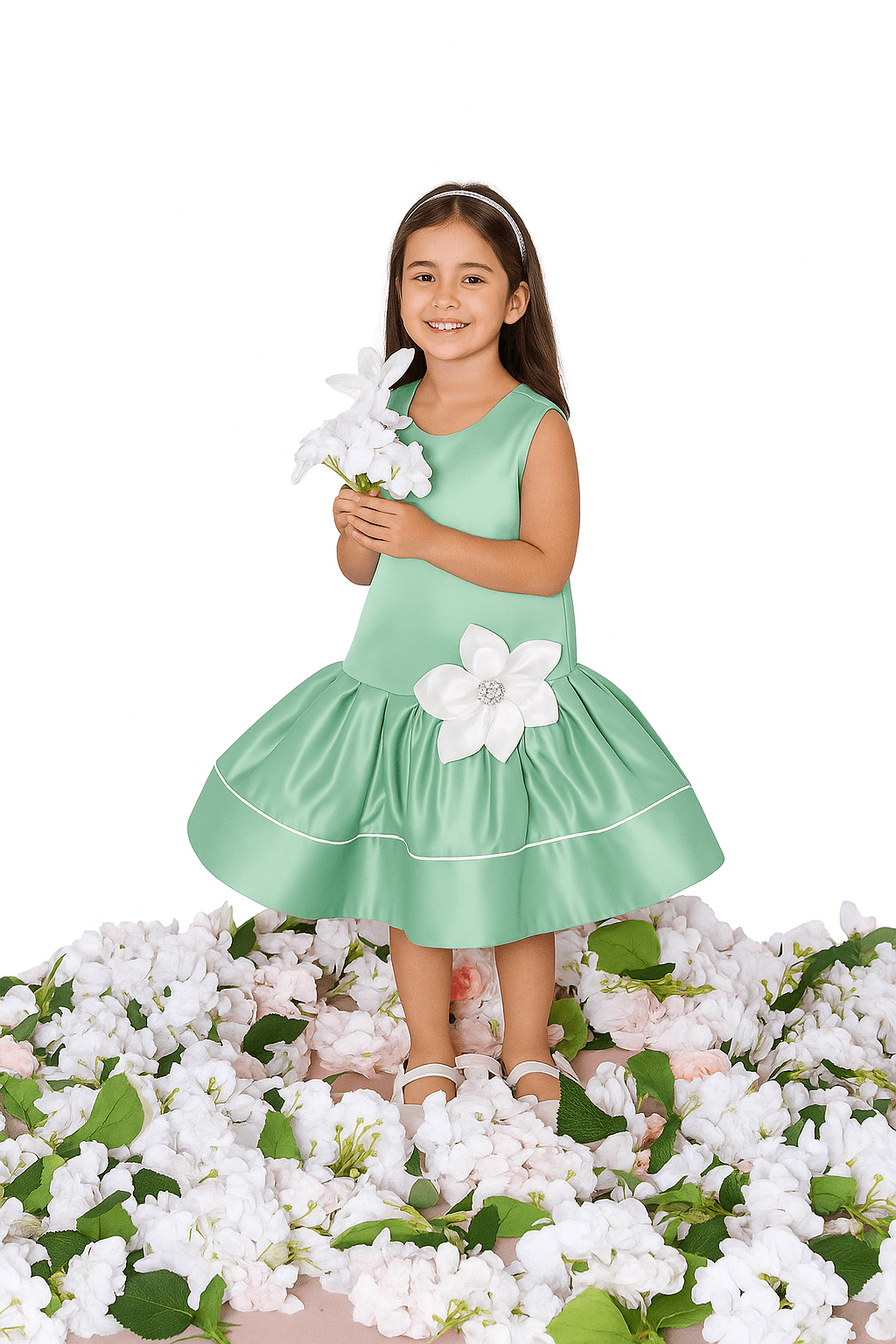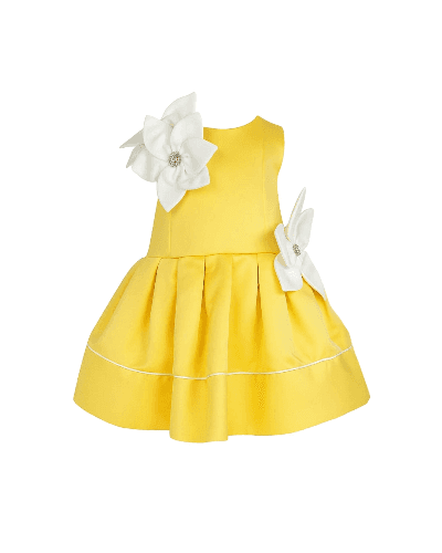 Blossom Dress Satin party dress with pleated skirt and white 3D flowers available in 3 COLORS.