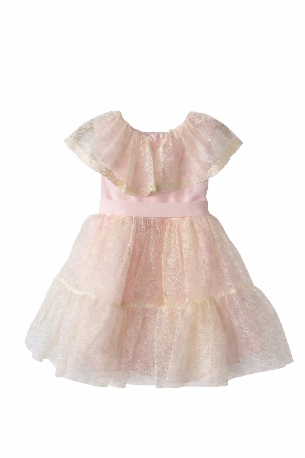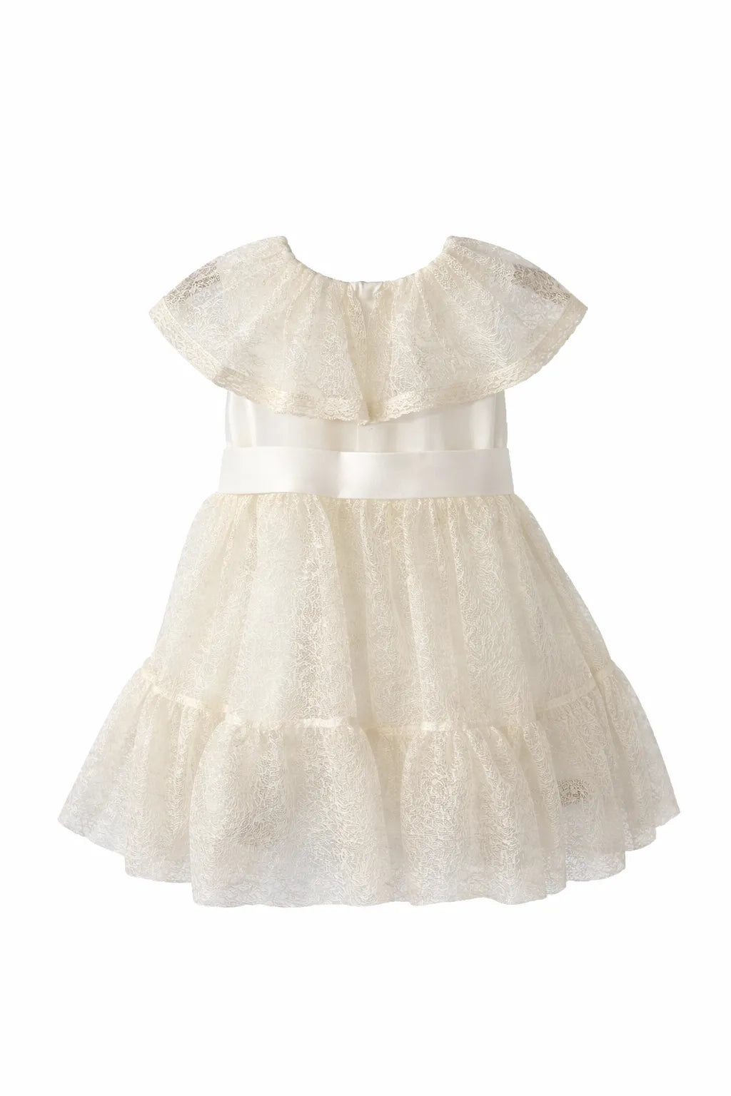 A pretty lace baby dress with a fluffy skirt. Light and comfy.