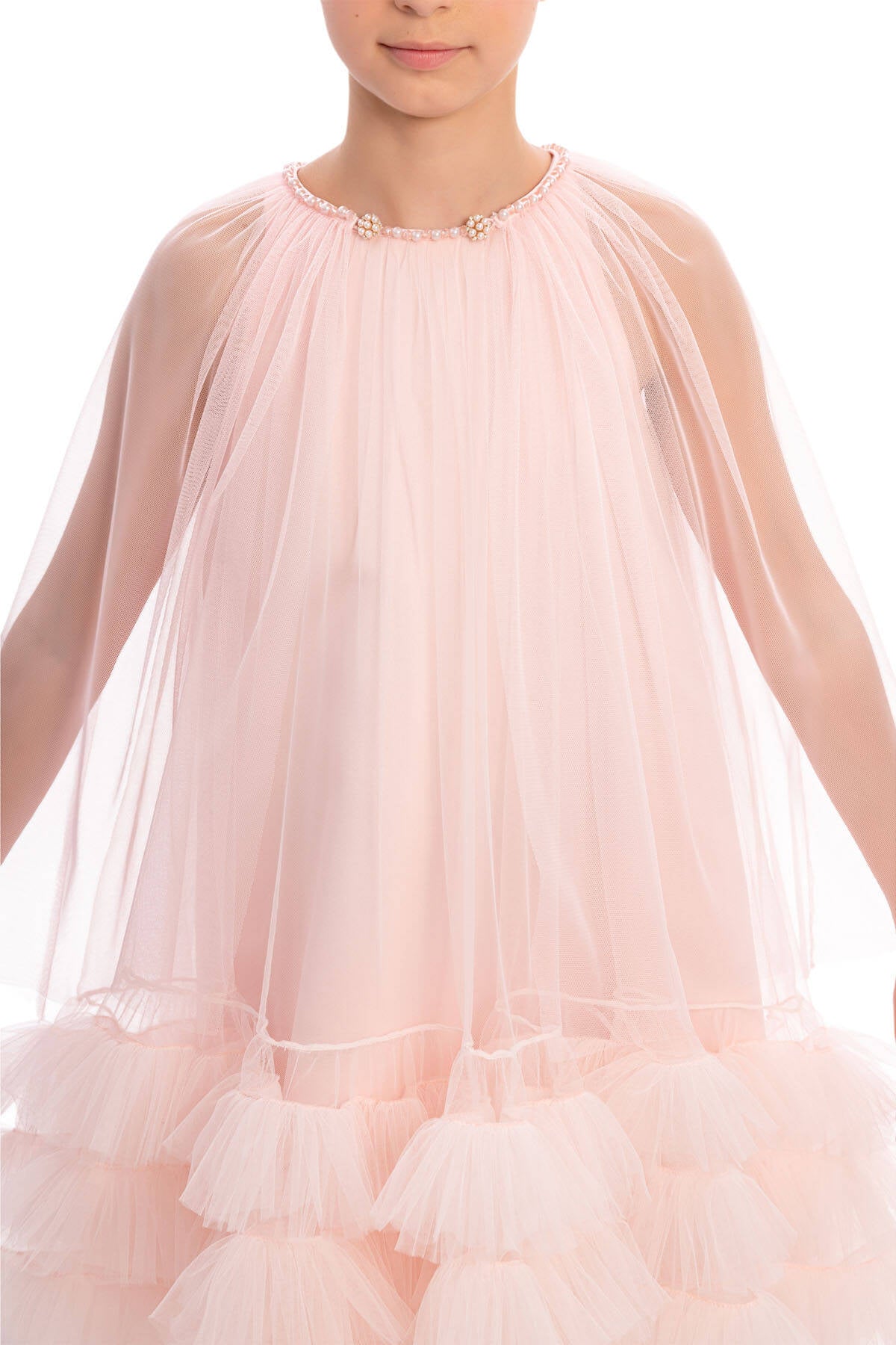 A dreamy piece designed for unforgettable occasions! This high-low dress features cascading layers of soft tulle ruffles that flow beautifully with every step.