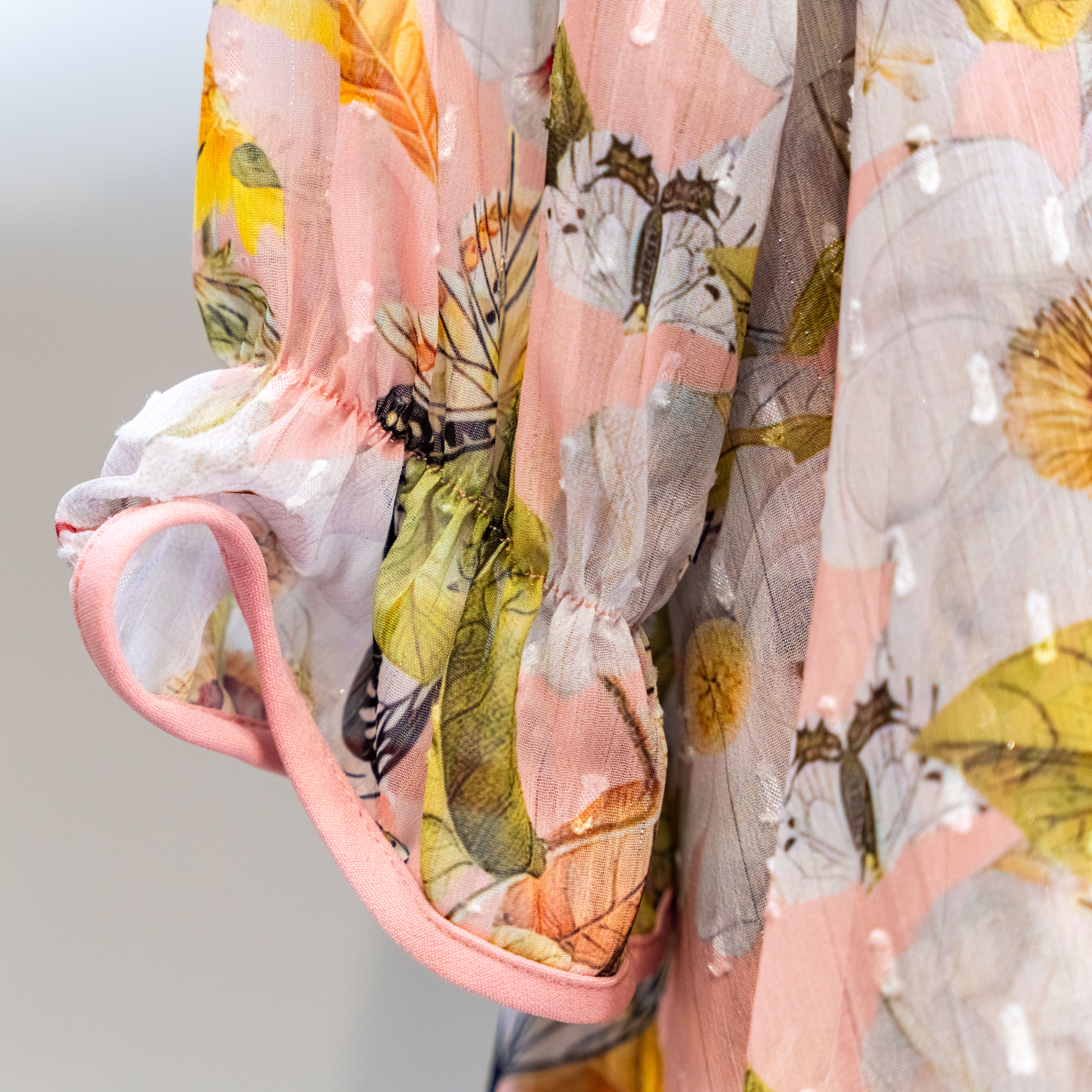 Signature kids dress crafted from premium fabric with an adorable pink bow detail at the center.